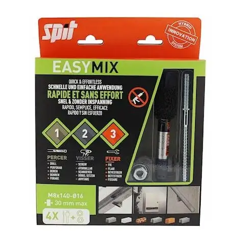 cheville mécano-chimique – spit easy-mix – 8 x 140 mm – blister de 4 – spit 060230