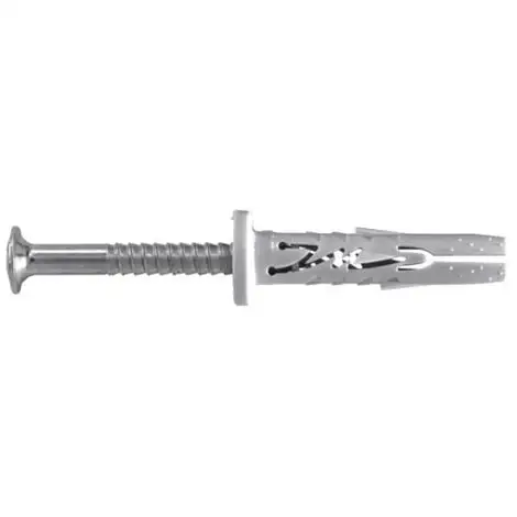 Fixations légères à frapper pour matériaux pleinsChevilles nylon à frapper Spit Hit collerette plate Clous-vis prémontés.
