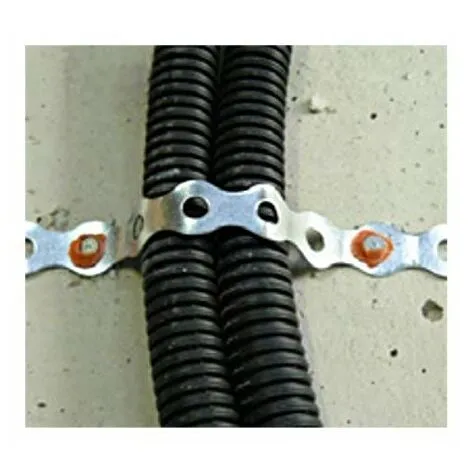 Bande perforée Spit. Elle permet de fixer des gaines électriques et tuyauteries au sol.