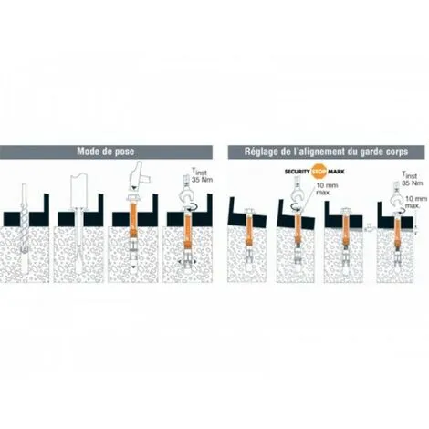 Desserrage possible après la pose pour la mise à niveau du garde-corps
