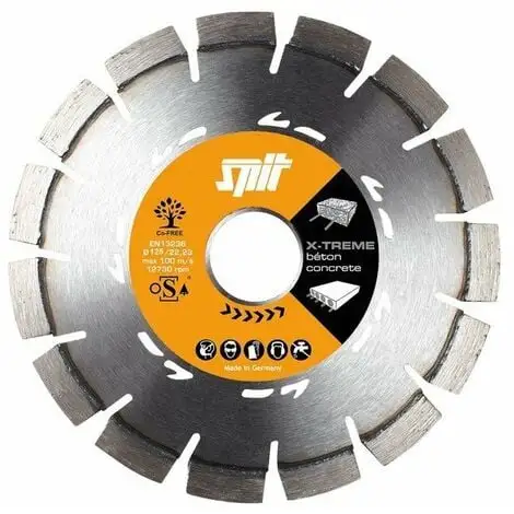 Disque diamant Xtreme béton Spit. Ce disque permet la découpe de béton, parpaing, brique pleine, tuile, carreau céramique et marbre.